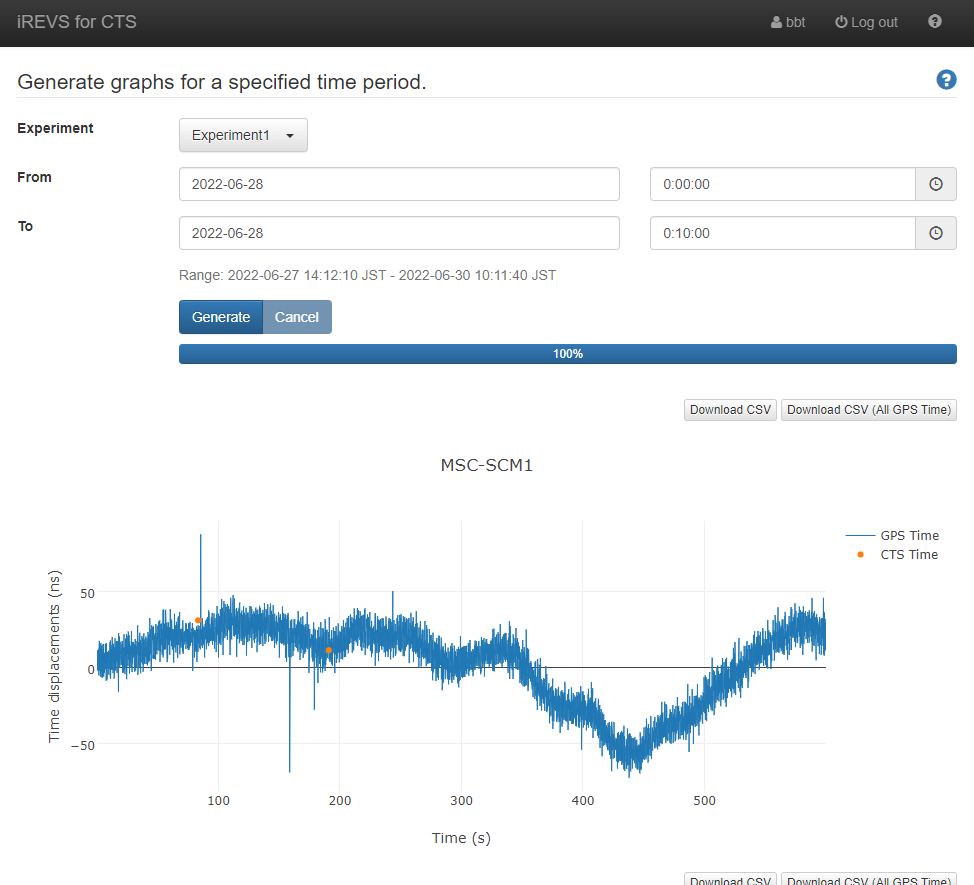 - [Download CSV (All GPS Time)] : Download a csv containing all GPS Time and CTS Time data displayed in the graph.